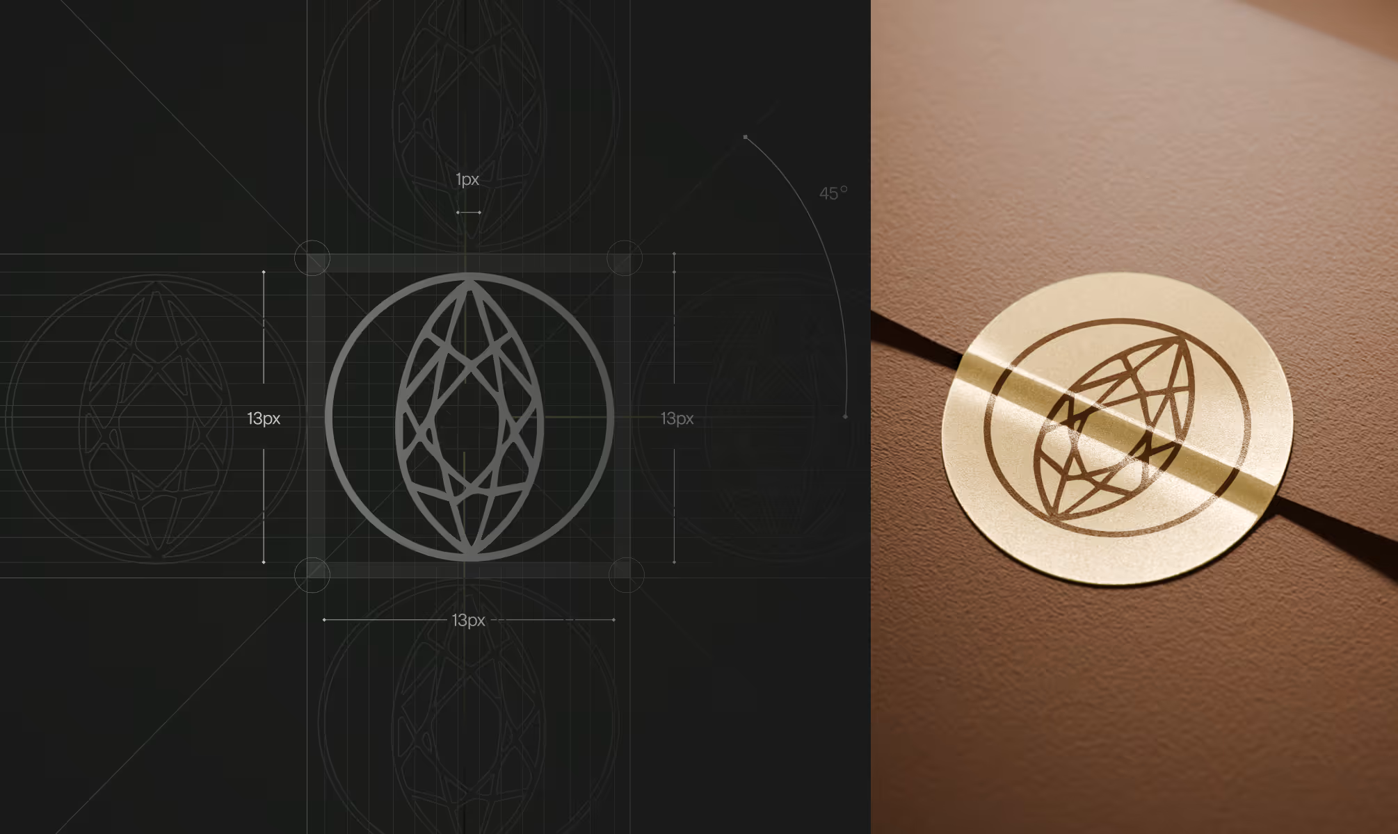 The logomark was built around a faceted gemstone form rendered in clean geometric line work, referencing the loupe, the jeweller's precision magnification tool, as both a naming device and a visual metaphor for verified scrutiny. The mark communicates that every gemstone on the platform has been examined, authenticated, and cleared.